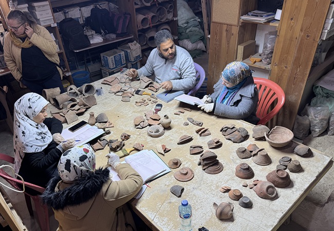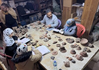 Trainees in the ceramic module learned to identify vessel types and study the main clay fabrics used in ancient Egyptian pottery. They explored the stages of manufacture, from shaping and surface treatment to firing techniques and decorative styles. These observations help students link pottery to patterns of use, allowing them to identify the functions of buildings and rooms across the site—and even to infer aspects of economic and social status. The curriculum expands beyond the local context. Students examine characteristic pottery types across different Egyptian periods, gaining tools not only for dating but also for tracing the long development of ceramics as a cultural product—one inseparable from other expressions of ancient Egyptian life.